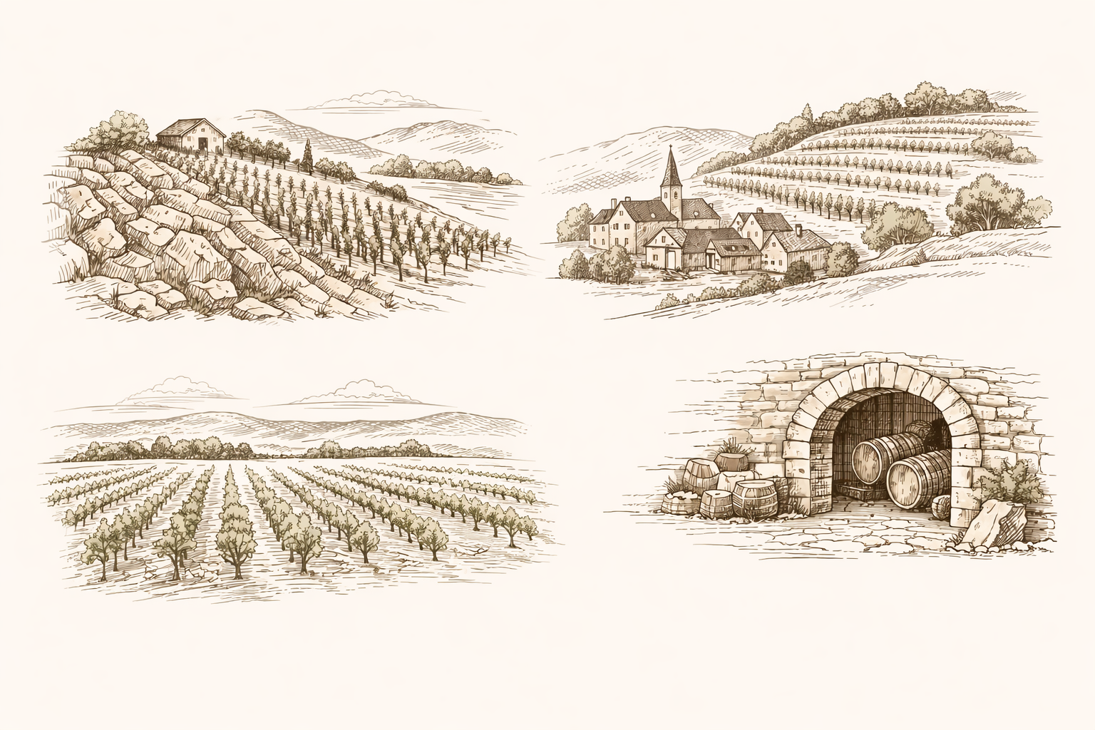 Cette situation ralentit naturellement la maturité et favorise la conservation de l’acidité. Les sols drainants limitent la vigueur de la vigne et encouragent un enracinement profond. Les vins issus de ce terroir se distinguent par leur fraîcheur, leur tension et leur finesse aromatique, avec une expression élégante du fruit et une belle minéralité.